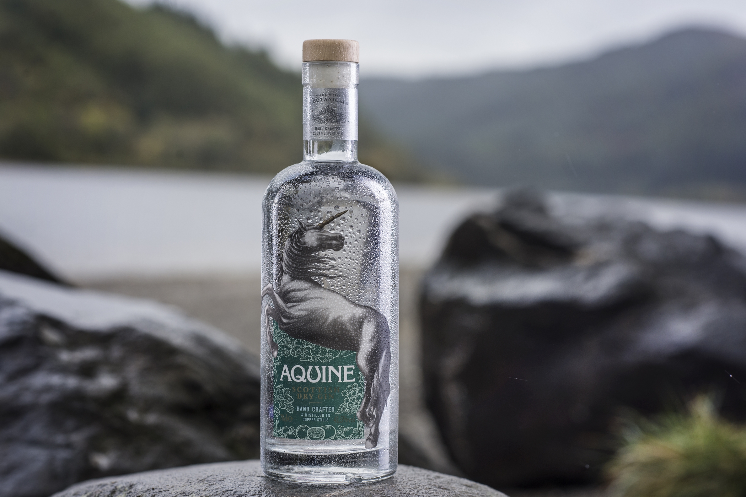 Aquine has been created and distilled using pure Scottish water, representing the legendary myth that the unicorn’s horn can purify tainted waters.
