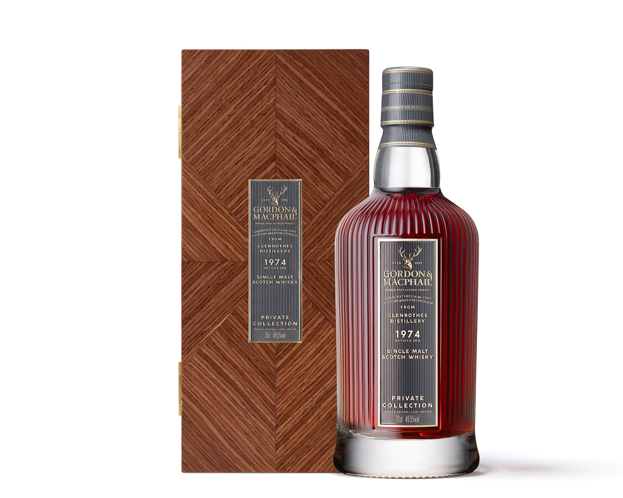 Presented in ridged heavyweight bottles housed in veneered wooden boxes, both ‘Private Collection’ releases were selected for bottling by Stuart Urquhart, Gordon & MacPhail’s Associate Director of Whisky Supply and member of the fourth generation of the owning family.